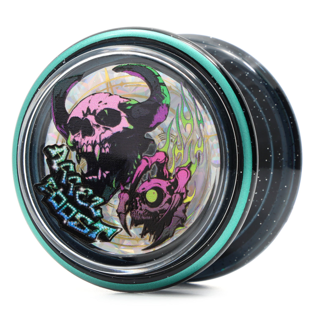 前回の罵詈雑言から頭も冷え、改めてこの機種に向き合ってみた。これはレビューではなく雑記であり、参考と言うよりは自身がやった記録として残すメモみたいなものである。「ふーん」くらいに流し読みしてくれたら幸いである。あと不確実な考察も入っているのでそのあたりも真剣に受け止めず話半分くらいに思ってくれれば。最後に、もしリワインドでアクセルブーストを買っても問題点や不満は『絶対に』バンダイの方に問い合わせるようにしてほしい。 いきなり本題に入るが、Xや練習会の人々の情報をまとめると結局の所、ブレの要因はアクセルディスクのようだ。コイツが回転中のヨーヨーと干渉して酷いブレを起こしているらしい。このディスクの精度がそこまで良くないのも影響しているっぽい。難しい理屈は分からないが、まあそういうことだそうだ。じゃあアクセルディスクを外せばいいんじゃ?と思うがそう簡単な問題ではない。ネジを外してディスクをとってもアクセル公式サイトの図面で言うホルダー部分のベアリングにほぼ完全に外せない形ではめ込まれているからである。まあ玩具なので安全性は第一だからこれは仕方がない。ならディスクとホルダー無しならどうか?これもノーだ。アクセルブーストのアクセル(軸)は競技ヨーヨーのようなタイプではなく、ルーピングヨーヨーやサクラストリーム、JTのオフストリングにあるようなナットとネジで締めるタイプであり中で固定されていない。構造的にホルダーが蓋になっており、これが無いとネジとナットがボディから外れてしまうのだ。まあ注意深く組み立てればそこは問題ないが、この状態だとブレないかわりに軽すぎてスリープが伸びない。恐らくスピンスターと同等かそれ以下くらいにしか回らない。なのでやはり理想はディスクのみ外した状態である。じゃあどうするか。バラす(破壊する)しかあるまい。自身のサベージフェンリルを犠牲に写真を撮影。一応それもアップロードしておく。アクセルディスクは中央のベアリングに外側から軸が刺さっており、裏側からプラ素材のリングで抜けないように固定されている。(写真三枚目参照。右二個はバラしたサベージフェンリル、左はバラした分補填用に買い足したアビスデーモン)なのでそのプラ部分をマイナスドライバーやニッパー、ペンチ等で破壊し、細いドライバー等で軸を叩いてベアリングから外した。かなりガッチリはまっており、ホルダーとディスクの間にドライバーを差し込んで無理矢理こじ開けるくらいしないと外れない。なのでホルダーには傷がつくが、正直今更自分にはそんなもん些事である。そしてディスクを外したら再びネジ止めして組み立て。(写真一枚目、二枚目参照)これでどうなったかと言えば・・・完璧である。恐らく個体差はあるだろうが、自身の個体はほぼブレ無し。それでいてスリープの伸びも歴代アクセルシリーズに引けを取らない。前回の罵詈雑言のレビューの中で書いた「歴代最高傑作」と言える出来となった。性能的には「スピンスター以上アロー以下」くらいの性能。競技プレイヤーからすると低いじゃねえかそれ、と突っ込まれそうだが玩具であるアクセルブーストで競技ヨーヨーに迫れるのだからむしろ賞賛すべき。やっぱり機種の素質的には素晴らしいものを持っていたが、皮肉にもそれをダメにしていたのがアクセルシステムという矛盾。Xでは一部で自分と同じように分解し、自身で加工した金属キャップをはめ込んだりする猛者もいるが、さすがにそこまで行くと一般人には無理な話。今更な話だが、分解は自己責任である。自分は使えなくなるのを覚悟の上で(3700円をドブに捨てた上で)行ったので、もし分解して使えなくなった・元に戻らなくなった等の苦情を言うのは絶対にしないように。 もう一つの要点、パッドについて。実はアクセルブースト、設計にヨーヨーリクリエーション(JNで優勝したナカムラリュウイチ選手や世界チャンプのミウラハジメ選手が所属する日本競技ヨーヨーメーカー)が関わっているとの噂がある。あくまで噂なので自分も信じている訳では無いが、ヨーヨーリクリエーションが発売している初心者向けヨーヨー「ファイブ/5IVE」という機種のレスポンスが恐らく流用・応用されているっぽい。このファイブもアクセルブーストと同じくサイズAベアリングで引き戻し仕様の為、構造的・技術的には使えたのかもしれない。実際に某所でファイブを購入し精度ガバガバのプラノギスで内径・外径を測ったが、ほぼ一致した。(写真四枚目参照)流石に厚みまでは分からないが、ファイブのパッドが使用できることが分かった。そのファイブのパッドはヨーヨーショップスピンギアにて扱っているので、もしパッドに細工して取り返しがつかなくなった人はそこで取り寄せれば何とかなるかもしれない。 今の所自分はパッドの出っ張りをデザインナイフでツラ位置に切り落とし、半バインド機種として使っ
