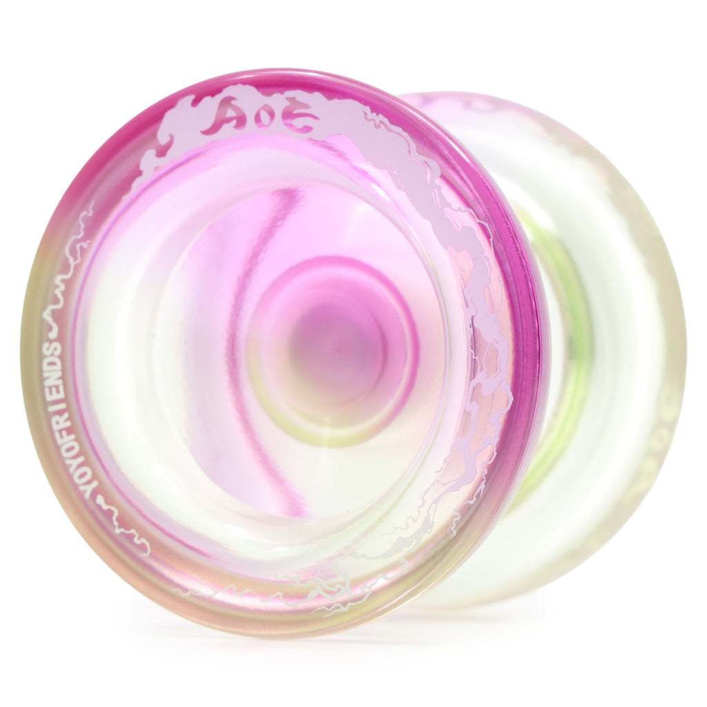 Equipped with a finger spin spot, AoE is a great value for its price. The AoE is a beginner to intermediate yo-yo model from Yo-Yo Friends, recommended for first time binders. It is also the company's first injection molded plastic yo-yo.