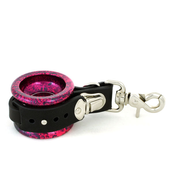 This real leather, handmade yo-yo holder is brought to you by Yaneura WORKS. The quality and thickness of the leather is the first thing you notice, and the holder is adjustable so you can carry just about any yo-yo around with you. The slimmer back strap gives the holder a firm grip, regardless of which model it's holding.