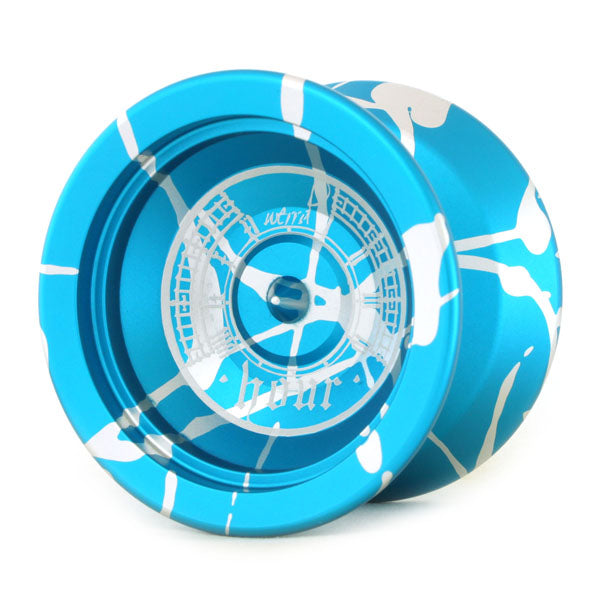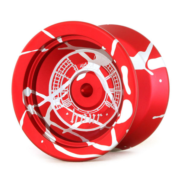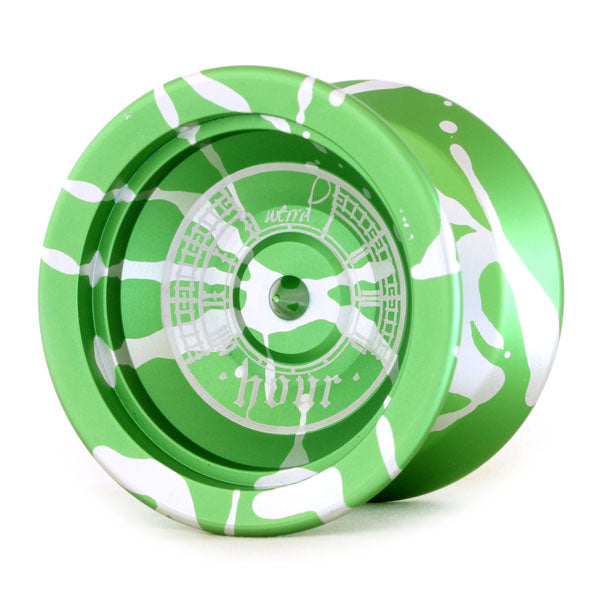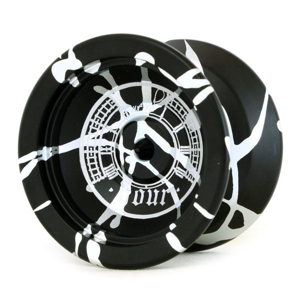 A rare coloring and rare material creates a rare yo-yo. The Hour has an unusual sense of proportions, and the artwork on the side is inspired by London's Big Ben. Within the world of string trick yo-yos, the catch zones inevitably widen to aid in landing tricks, which spreads out the weight distribution. The Hour keeps its width narrow, which keeps the weight close to the center and also keeps the yo-yo spinning strong.