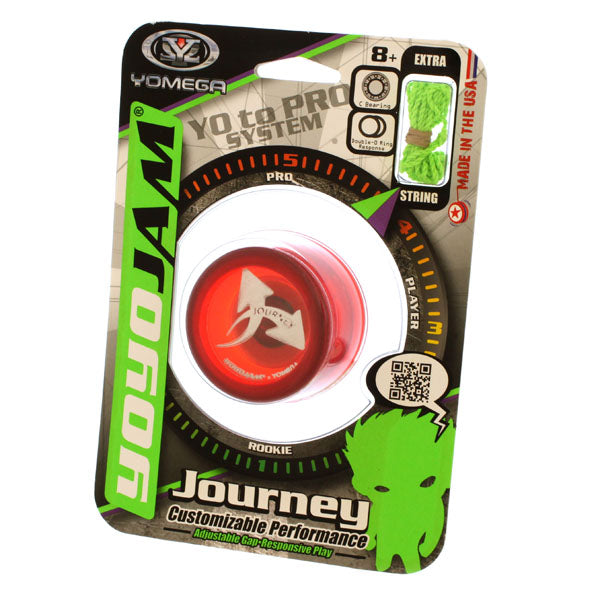 Originally the flagship model of YoYoJam's lineup, Journey is seeing a re-release as a collaboration model between Yomega and YoYoJam. The original Journey set the standard for contest models back in the days of plastic. With its round body shape and wide catch zone, Journey helped support the development of new yo-yo tricks back when trapeze style tricks were just getting warmed up.