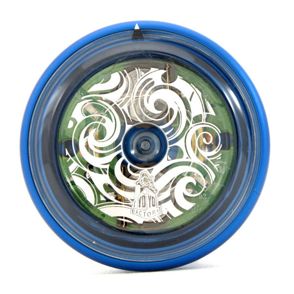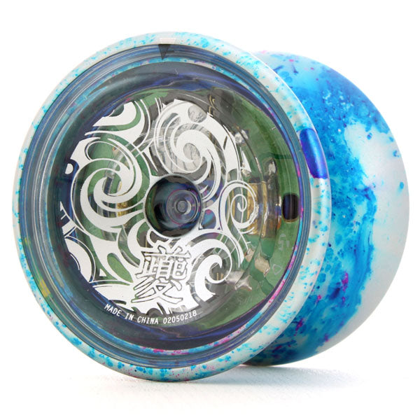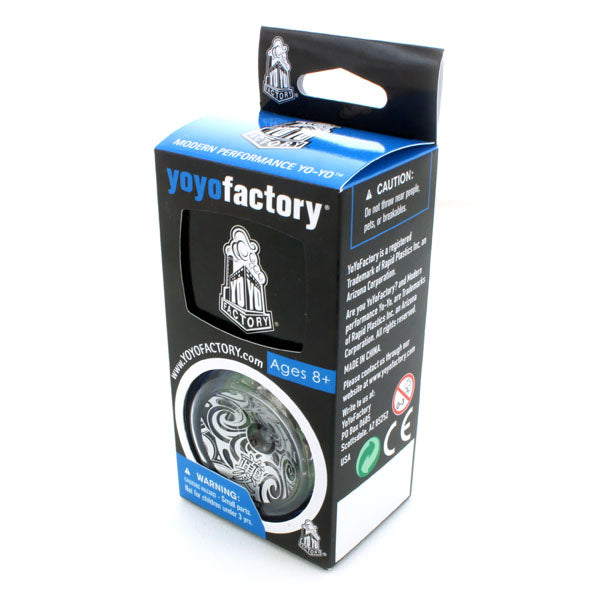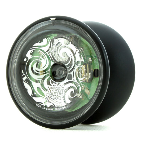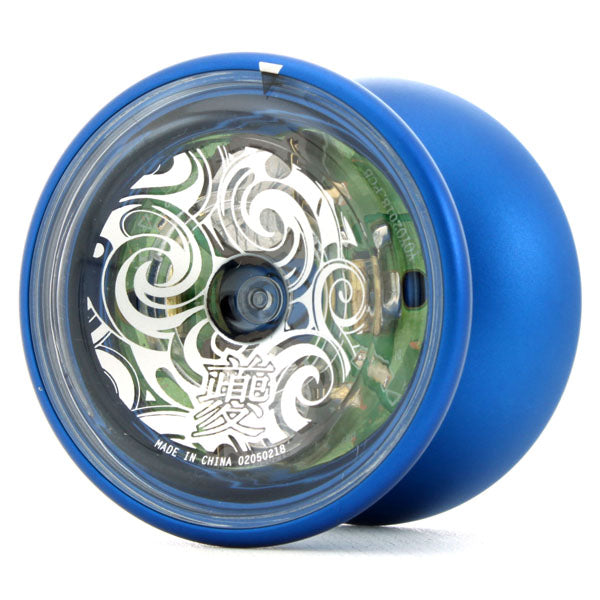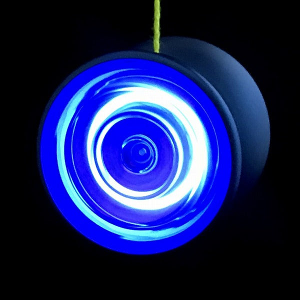 This is a unique combination! Made for China's premier pro yo-yo player Luo Yicheng's Kui stands out amongst YoYoFactory's excellent lineup. While almost all LED yo-yos are fully made of clear plastic, the Kui steps up the performance by making the body out of aluminum, giving it the power and stability of a competition throw, with the stage presence of LED on the sides. This combination is sure to bewitch your audiences, especially when you mount fingerspin tricks and illuminate your hand below the yo-yo.