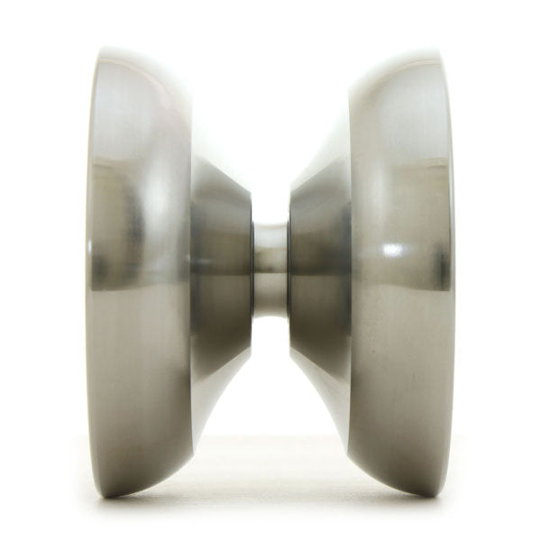 リワインドTVで紹介されているのを見て存在を知り、フルステンレスという他にはない存在感にすごく魅力を感じていました。そもそもリシアンサスという名前がオシャレでかっこいい!買いたいなぁと思っていましたが丁度福袋の時期だったので我慢していましたが、特大を買えなかったので「浮いたお金でリシアンサス買ってやる!」と勢いで購入しました。結果として買ってすごく良かったです。満足感の非常に高い逸品でした。まず見た目がめっちゃくちゃいい!ステンレスをこれでもかと削りまくったサイドフェイスのたくさんの線がたくさんの段差を生み出していて、水の波紋のようで美しい、かつ攻撃的な印象も与えてかっこいいです。そしてRAWなので光がそのまま反射してきてキラキラしてキレイです。眺めながらお酒を飲むだけで楽しい芸術品のようです。使い心地ですが、振って最初の印象は重たいヨーヨーだと感じました。68gのヨーヨーを扱うのが初めてだったのもあり、動きがもっさりしてるように感じてこれは扱うのが難しいヨーヨーかもと思いました。ヨーヨー紹介にあった軽快なフィーリングというものはもっと上級者じゃないと感じれないものかと思いました。しかし使っていくうちに重さにも慣れて、力の入れ具合などの扱いがわかってくると軽快さというのが顔を出してきました。力を加えたらそれに素直を答えてくれる。ストリングをスルスルすべる。そして重量感でヨーヨーがここにいるよと常に教えてくれるような感覚がクセになります。リシアンサスの一番ポイントは傾きに強いということだと思います。ボヨンボヨンやイーライホップを繰り返しても傾きにくく何度でも続けられる。この傾くにくさがその他のコンボでも効いてきて、ロングコンボを支えてくれるんだろうなぁと感じます。その傾きにくさとスリープの長さで新しい技の習得がすごく捗りました。レフトハンドレールライトハンドレールをこいつのおかげで短時間で習得できました!フィンガースピンにも挑戦していますが、RAWなので肌に当たるとキュッとブレーキがかかってなかなか上手くできません。出来そうな形状ではあるのでもっと練習して出来るようになりたいです。またシェイプがすごく使いやすい。リムのラウンド形状がキャッチの時の衝撃を和らげてくれて痛くない、どころかインバース部分が中指にぴったりはまるようで気持ちいいです。ブレインツイスターコンボからのサマーソルトバインドをつい何度もしてキャッチの気持ちよさを味わっています。1Aにいいのはもちろんなのですが、個人的に5Aにもおすすめです。上記のキャッチの気持ちよさがあるので5Aのキャッチのときも痛くなく親指と人差し指の間にスポッと戻ってくる感覚がたまりません。ヨーヨーが違うとこんなに痛くないんだって驚きました。ステンレスで傷もつきにくくへこみにくいので落とした時もこいつは大丈夫だ!と心理的ダメージも少ないです。高価なヨーヨーなのにガンガン落とせるって最高の贅沢な気もします。2つ買って3Aとかもありなのではないでしょうか。高いですが。RAWシルバーなのでどんなストリングカラーでも合うという利点もいいです。気分に合わせてコーディネートできるのも利点です。ハイエンドモデルを初めてレビューするので出来る限り細かく書こうとしたらえらい量になりました。総合するとすぐ売り切れになるのが頷けるとてもいいヨーヨーです。