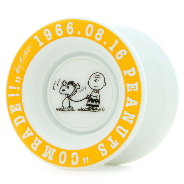 This yo-yo is a collab model with "Snoopy" of Peanuts fame. Yes, the same character made famous by Charles Shulz's timeless classic newspaper comic. The package features comic frames on three sides, with the side of the yo-yo itself creating the fourth frame. The different colors have different themes tying back to yo-yo: Red is "Long Sleeper," Blue is "Rock the Baby/Blanco" and Yellow is "Walk the Dog."