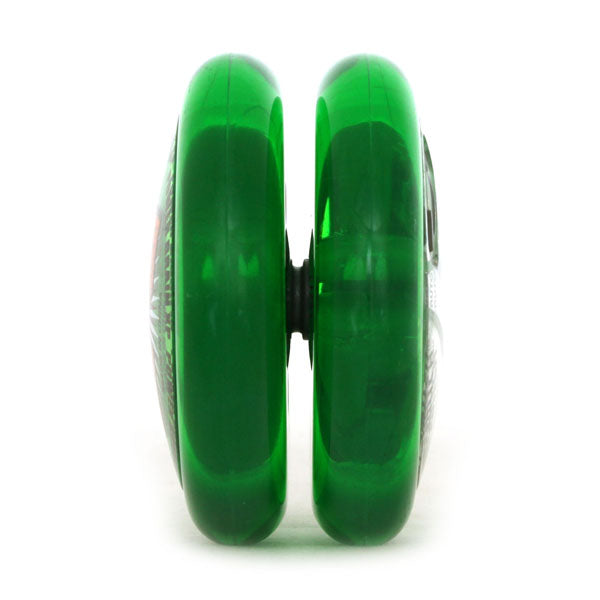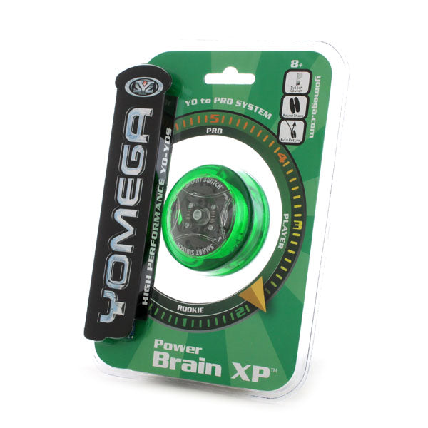 1997年。空前のハイパーヨーヨーブーム真っ只中、全くの偶然で手に入れたハイパーブレインから始まった私のヨーヨー歴。2000年頃まで続けたものの、結局ハイパーレベルのトリックがいくつか出来る様になった程度の実力のまま次第にフェードアウト。その後は、何年かに一度程度思い出して少し振って懐かしさに触れる事はあったものの、第二期ハイパーヨーヨーを店頭で見かけても購入には至らず、第三期に至っては展開されたいた事すら知らなかった。そんな私が、2020年突如としてヨーヨーへの復帰を決め、その最初の機種として選んだのがこのパワーブレインXPであった。そう、私にとって始まりのヨーヨーがハイパーブレインであったならば、再開の最初に手にすべきは進化したブレインであるべきだと思ったのだ。パワーブレインXPは、ブレイン→エックスブレイン→パワーブレインと進化してきた、アメリカヨメガ社を代表するブレインシリーズのひとつ。その名のとおり、まるで頭脳を持っているかのように、スリープ力が弱まると自動的にストリングを巻き取り手元に戻ってくるオートリターンシステムを搭載したヨーヨーシリーズである。その秘密である遠心クラッチの形状や仕組みが、より一層進化したのがパワーブレイン。そして、本機はそのパワーブレインに、オートリターン機能のオン・オフが行えるスイッチを搭載したモデルとなる。ブレインシリーズは、正しくスローしないと遠心クラッチが開かずスリープしない特徴があり、これにより初心者は最も基本となる正しい投げ方を身につける事が可能となるのが最大の利点となる。が、一方でこの遠心クラッチが、ある程度技術を身につけてくると、スリープのもうひと伸びを阻害しオートリターンしてしまう為に邪魔な存在となるデメリットがあった。そこで、かつてのプレイヤーは遠心クラッチを働かせている専用ナイロンベアリング(プラスチックスプール)に搭載されているゴム製Oリングを取り外し、オートリターンしないようにして使い続けるか、もしくはブレインの使用を諦め、ファイヤーボールやレイダーに乗り換える事でステップアップしていっていたのである。そんな最大の長所が同時に最大の欠点であったブレインシリーズにとって、スイッチひとつでオートリターンのオン・オフを可能としたパワーブレインXPは、革命的な機種と言えるのではないだろうか。基本が身につくまではオートリターンをオンにして修行。技術が身に付いてからもスイッチをオフにして、更なるステップアップがこのヨーヨーひとつで可能なのである。パワーブレインXPをスイッチオフで使っていても性能が物足りなくなる程に上達したならば、しっかりと基本が身に付いているだろうから、バインド機種へ乗り換えて1A・3A・5A部門へ進んだとしても、ルーピング機種で2Aに進んだとしても、オフストリング機種で4Aに進んだとしても、知識と経験が役に立つはずである。少々余談ではあるが、パワーブレインXPはブレイン(クラシック)と比較して一回り程大きいボディサイズが採用されている事を付け加えておこう。
