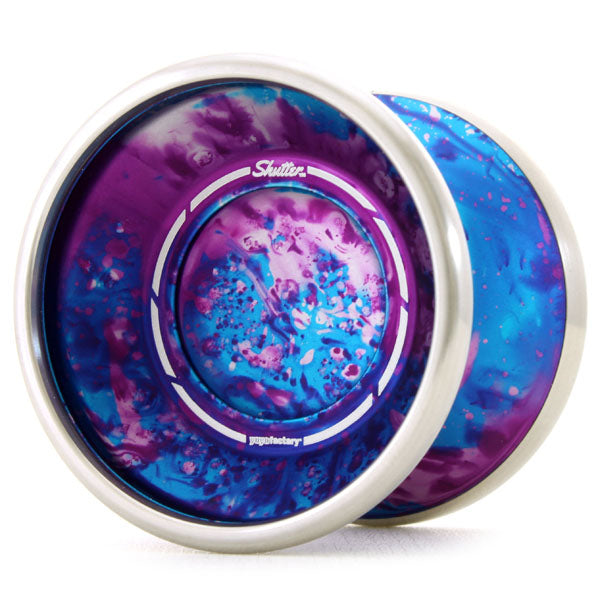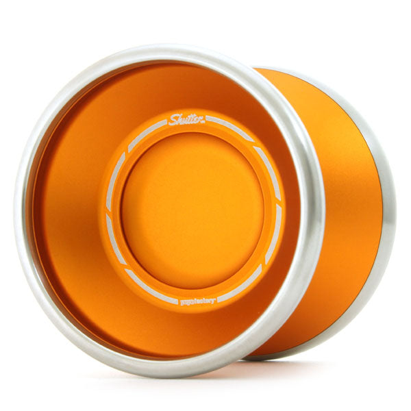 YYF's huge hit, the Shutter has been wrapped in a blanked of stainless steel that takes this great throw to the next level! Another version of the signature model of 2014 and 2019 1A World Champion, Gentry Stein, the new bimetal Shutter brings the full heat of Stein's performance into the palm of your hand. The design was handled by SUS YOYO MECHANICS, giving it an otherworldly essence compared to the other YoYoFactory in-house models.