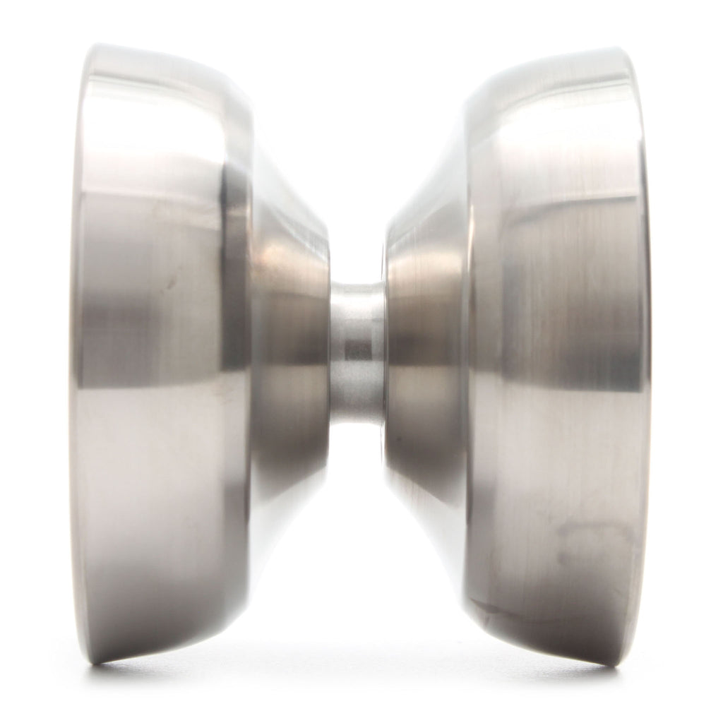 五月が誕生日ということで何か奮発して買おうと思って思案した所、久しぶりのデルフィニウム以来に実用的チタンが欲しいと思いこれに至った。三居さんオーダーというのもあり興味も十分。チタンということで初心者ながらなるべく詳しくレビューできたらと思い書いていきたい。 まず前提としてSUS002トランスミッションのチタンバーションなのだが、トランスミッション自体が非常に素晴らしい機種である。自身もレビューしたのだが、このサイズながら幅広で、重量がありつつも軽快かつ浮遊感溢れるフィーリングが振っていて気持ちいい。しかもスリープの伸びも素晴らしく、普段使いにもフリースタイルにも使える万能さ。そして三居さんが公言するお気に入りの機種でもある。スペック的には幅が1mm狭くなった以外はほぼ変わりは無い。見た目的にはサイドフェイスの中心がより削られて軽量化しており、リムの厚みが薄くなっている(約6mm→約4mm)。なので持ってもさして違和感は無いが、雰囲気(材質?)的にちょっと詰まってる感、カッチリ感がある。 ここまではほぼ変わり無しだが、振ってみると大分イメージが違った。前述したとおりトランスミッションが重量に反した軽快な使い心地なのに反し、ハイギアは「重量通りのドッシリフィーリング」という真逆の物。リムが薄くなっているのにリムに重量感をしっかり感じ、動かす際の挙動が一手一手ハッキリしている。トランスミッションの頃からスリープの伸びが素晴らしい故に比較してしまうと微増位に思えるが、ハイギア単体で見ても伸びはトップクラス。材質抜きにモノメタルでも最上位付近の伸びを見せる。なので性能に関してはお墨付きである。流石SUSさん。個人的には遊び・楽しみ要素を排してひたすら競技スペックに振った感覚。ドッシリ感とはいうがサイズ感からか不思議と動かし辛さは少なく、トランスミッションに比べて動かしている際の安心感・安定性は格段に上がっている。53mmという小さめの直径が細かいトリックや複雑な動きでも邪魔にならず、このサイズながらも46mmの幅が安心感を与えてくれる。そして小型ヨーヨーにあるまじき重量感とパワーでダイナミックなプレイでも位置を見失わずに使うことができるだろう。商品説明通り、チタンだからと臆せず普段使いとしてどんどん使っていくのが吉。チタンヨーヨー最初の一個としても比較的安価ながらしっかりした使い心地なのでオススメ。余談だが分解時にベアリングまわりが若干オイルっぽい感じがしたので洗うなりベアリング脱脂やピクセルベアリング等の高性能ベアリングに換装するのを推奨。 さて、ここまで書いてあれだが一番の問題は「性能はトランスミッションの純粋なアップデートながら使い心地は正反対」というところである。自分自身結構面食らったのだが「これはこれで」と受け止めている。トランスミッションを振ったことが無い・そもそも持っていない人なら特に問題は無いが、トランスミッションが好きで買った人だと大分狙いが外れるだろう。練習会でも何人かに振ってもらったが、トランスミッションを知っている人だと「なんか・・・ね」「ちょっと疲れるかも」と気後れするコメントもあった。逆に「トランスミッションの形状は好きだけど軽すぎるフィーリングが好みじゃない」という人は刺さるかもしれない。出来る限りフィーリングを維持してもっと回したいという人はクロスレシオの方がオススメである(売り切れ中だが) 最後に、三居さんにこのオーダーの理由を練習会で聞いたところ「チタンならもっと回るんじゃない?(意訳)」という単純な理由でSUSさんに頼んだとの事。けれども出されたものがゴリッゴリの実戦仕様になったのでボスJDS以上に目論見が外れてしまったよう。やっぱりトランスミッションがいい・・・とのことです。